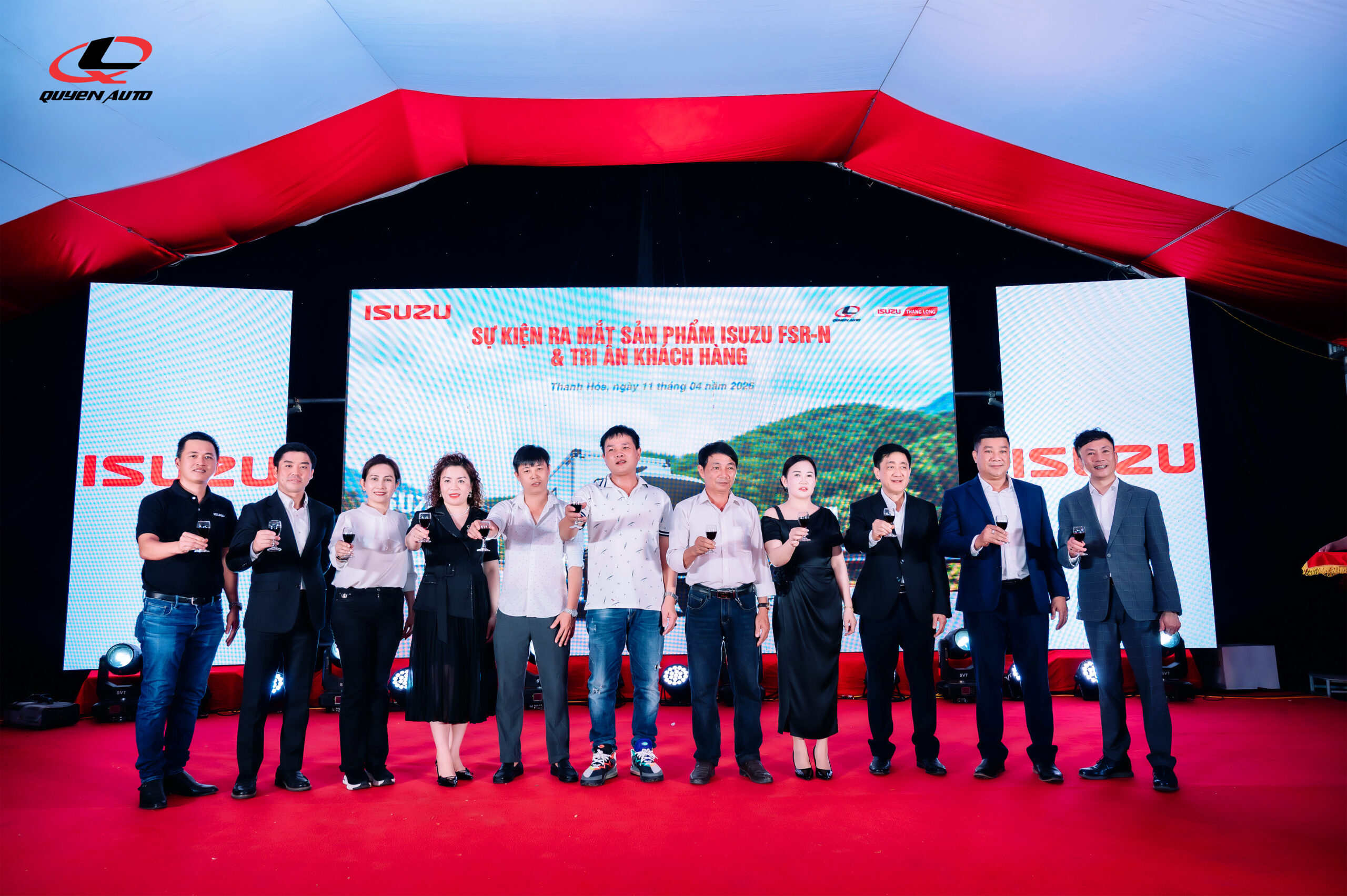 Ngày 11/04/2026, Quyen Auto phối hợp cùng Isuzu Việt Nam và Đại lý Isuzu Thăng Long, Chi nhánh Thanh Hóa tổ chức thành công sự kiện ra mắt dòng xe nền ISUZU FSR-N kết hợp thùng Bảo ôn Oxy Quyen Auto. Sự kiện tập trung giới thiệu giải pháp vận tải thủy hải sản tối ưu, bài toán mà nhiều doanh nghiệp hiện đang đối mặt với tỷ lệ hao hụt từ 5–10% mỗi chuyến hàng do hạn chế về phương tiện vận chuyển.