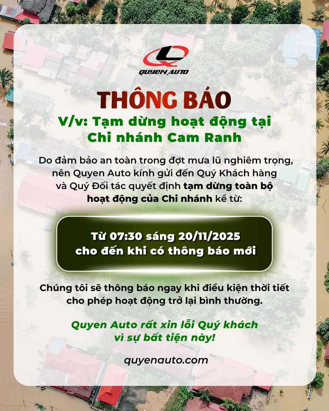 Thông báo tạm dừng hoạt động chi nhánh | Quyen Auto Cam Ranh