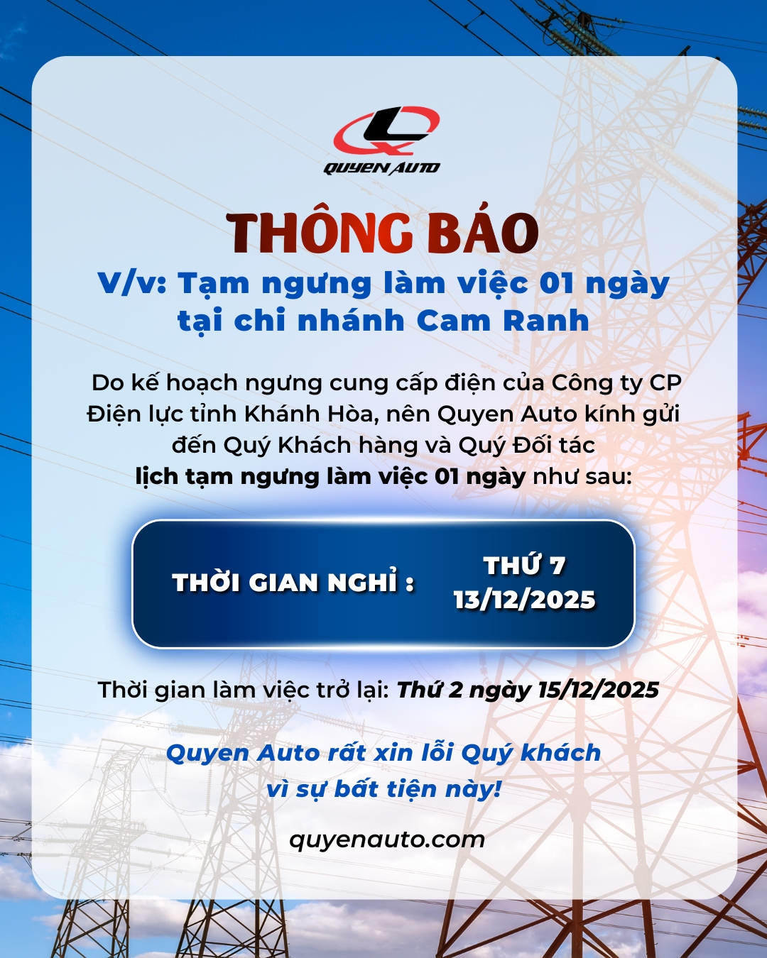 Thông báo tạm ngưng làm việc 01 ngày | Quyen Auto Cam Ranh